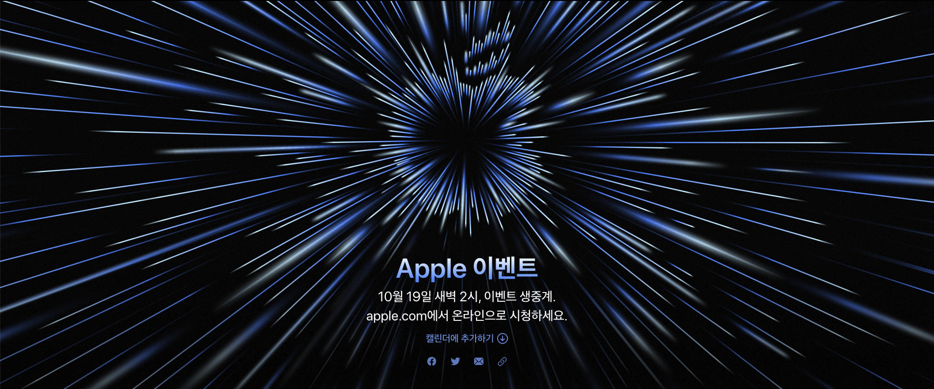 Apple 이벤트 이미지를 보니, 중앙으로 빨려 들어가는 빛 무리들이 애플로고를 이루고 있습니다.